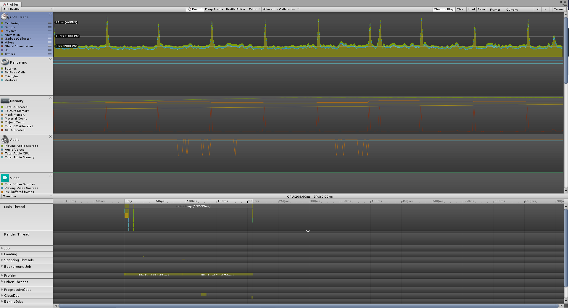 Further information about the profiler can be found in Unity’s documentation about the profiler window.