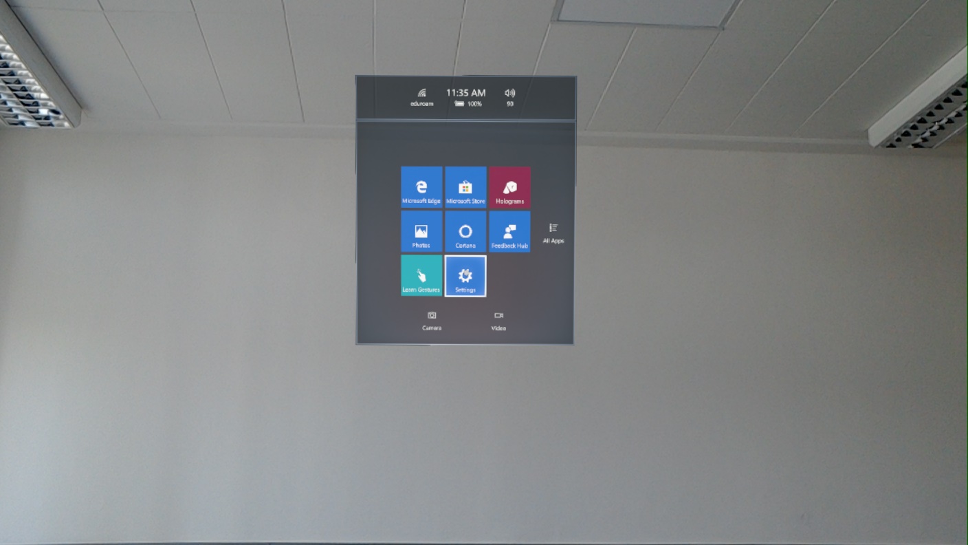 13.Make sure that the HoloLens is connected to the development PC by USB. Click the green play button in Visual Studio to start the installation of the app on the HoloLens.