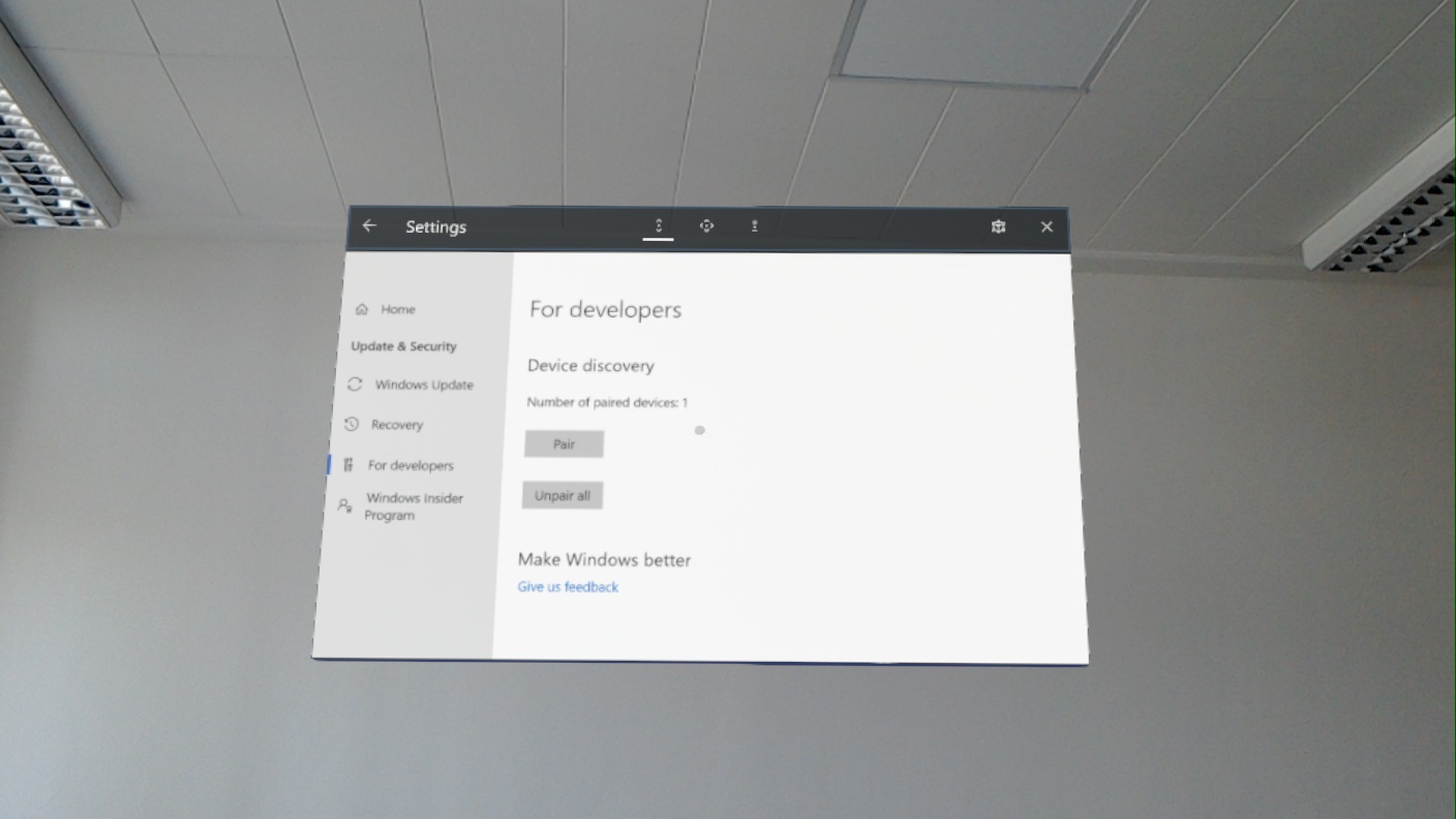 14.If this is the first time that you are building an app for the HoloLens, it will probably ask you for a PIN. You can find this dynamically generated code in the developer settings on the HoloLens.