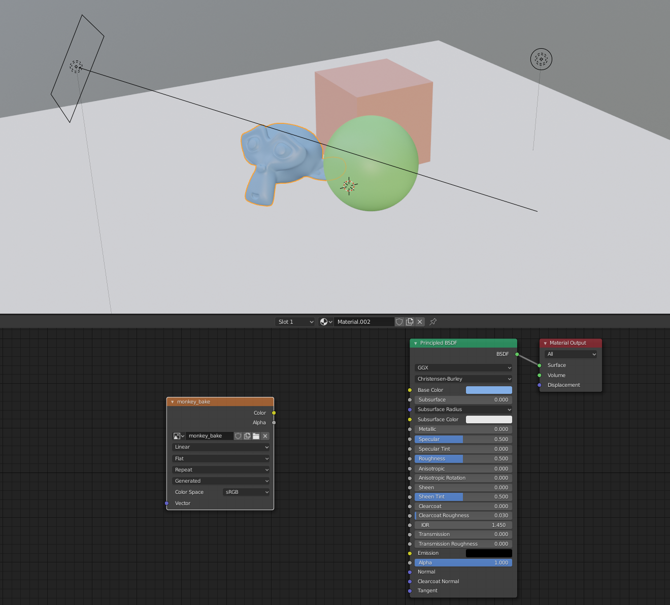 2.Select the sphere and monkey objects by left-clicking on them (you can also select multiple objects by holding down Shift while left-clicking).