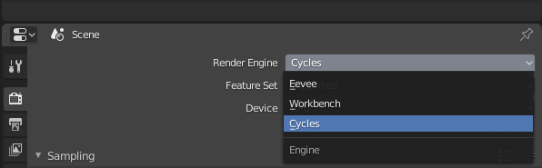 3.Switch the render engine from Eevee to Cycles in the toolbar. Eevee does not produce accurate results since it is optimized for real-time performance with simplifications in the shading process. Cycles is an unbiased raytracing engine which produces physically accurate results with regard to reflections and indirect light bounces.