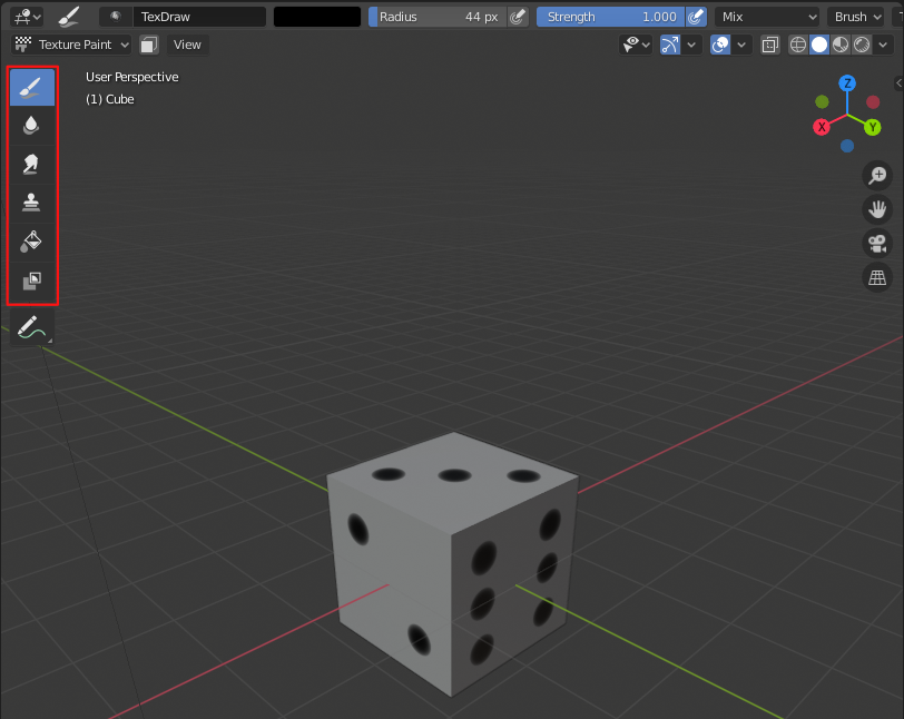 The goal of this exercise is to create a die. To achieve this, you will texture paint the sides of a cube so that they show the according number of eyes.