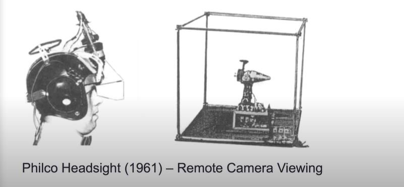 In 1961, Philco’s Headsight-Remote Camera Viewing system came out. The helmet included a video screen and tracking system.
