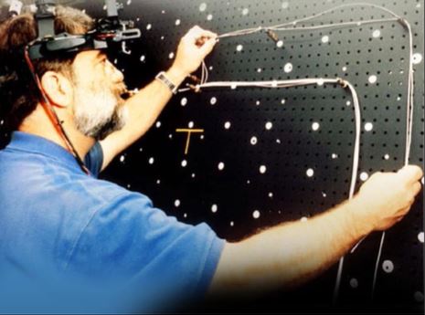 In 1968, Sutherland and Sproull developed the ‘Sword of Damocles’ that is the first augmented reality head-mounted display (HMD) and tracking system.